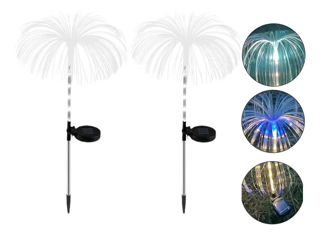 Convierte tu jardín en un espectáculo de color —sin cables ni consumo eléctrico. El pack de 2 estacas solares RGB con fibra óptica crea un efecto “medusa/fuegos artificiales” que cambia de color automáticamente, ideal para paisajismo, eventos y fiestas en terrazas, jardines y caminos.